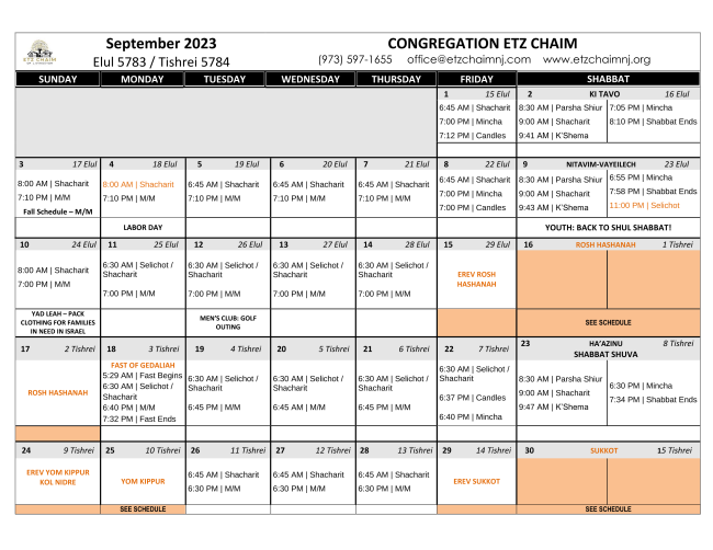 9:15 am | Shacharit